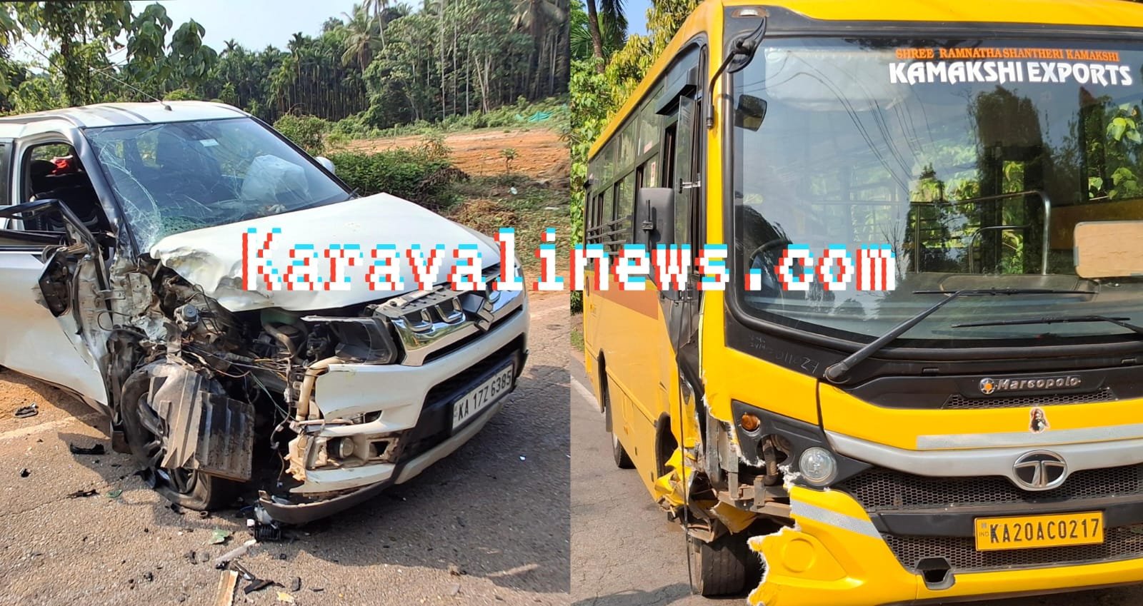 ಹೆಬ್ರಿ ಕಡೆಯಿಂದ ಕಾರ್ಕಳ ಕಡೆಗೆ ಅತೀವೇಗವಾಗಿ ಬರುತ್ತಿದ್ದ ಮಾರುತಿ ವಿಟಾರ ಬ್ರೀಜಾ ಕಾರು ಕಾಡುಹೊಳೆ ಸೇತುವೆಯ ಅಪಾಯಕಾರಿ ತಿರುವು ದಾಟಿ ಮುಂದೆ ಸಾಗಿ ನಿಯಂತ್ರಣ ತಪ್ಪಿ ಗೇರುಬೀಜ ಕಾರ್ಖಾನೆಯ ಕಾರ್ಮಿಕರನ್ನು ಬಿಟ್ಟು ವಾಪಾಸು ಹೋಗುತ್ತಿದ್ದ ಮುನಿಯಾಲು ಕಾಮಾಕ್ಷಿ ಗೇರುಬೀಜ ಕಾರ್ಖಾನೆಯ ಬಸ್ ಗೆ ಡಿಕ್ಕಿಯಾಗಿದೆ.