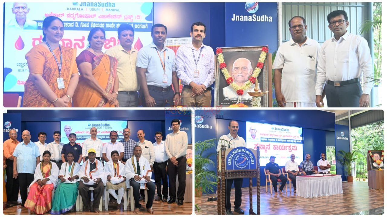 ರಕ್ತದಾನ ಶಿಬಿರ : ಅಜೆಕಾರ್ ಪದ್ಮಗೋಪಾಲ್ ಎಜ್ಯುಕೇಶನ್ ಟ್ರಸ್ಟ್ನ ವತಿಯಿಂದ ಜ್ಞಾನಸುಧಾ ಶಿಕ್ಷಣ ಸಂಸ್ಥೆಗಳ ಸಂಸ್ಥಾಪಕ ದಿ.ಗೋಪ ಶೆಟ್ಟಿಯವರ 104ನೇ ಜನ್ಮದಿನದ ಅಂಗವಾಗಿ ಆಗಸ್ಟ್ 21 ರಂದು ಜ್ಞಾನಸುಧಾ ಶಿಕ್ಷಣ ಸಂಸ್ಥೆಗಳು, ಹಳೆವಿದ್ಯಾರ್ಥಿ ಸಂಘ ಜ್ಞಾನಸುಧಾ ಹಾಗೂ ಕೆ.ಎಂ.ಸಿ. ಬ್ಲಡ್ಸೆಂಟರ್ನ ನೆರವಿನೊಂದಿಗೆ ರಕ್ತದಾನ ಶಿಬಿರ ಜರುಗಿತು. ರಕ್ತದಾನ ಶಿಬಿರವನ್ನು ಕಸ್ತೂರ್ಬಾ ಹಾಸ್ಪಿಟಲ್ ರಕ್ತನಿಧಿ ಹಾಗೂ ಎಚ್.ಬಿ.ಟಿ ವಿಭಾಗದ ಮುಖ್ಯಸ್ಥ ಪ್ರೊಫೆಸರ್ ಡಾ.ಗಣೇಶ್ ಮೋಹನ್ ಉದ್ಘಾಟಿಸಿ ರಕ್ತದಾನ ಮಹಾದಾನವಾಗಿದೆ. ಜ್ಞಾನಸುಧಾ ಸಂಸ್ಥೆಯು ಸಂಸ್ಥಾಪಕರ ದಿನಾಚರಣೆಯನ್ನು ಸಾಮಾಜಿಕ ಕಾರ್ಯಕ್ರಮದ ಮೂಲಕ ಕೈಗೊಳ್ಳುತ್ತಿರುವ ಸೇವೆ ಶ್ಲಾಘನೀಯ ಎಂದರು. ರಕ್ತದಾನ ಶಿಬಿರದಿಂದ 83 ಯುನಿಟ್ ರಕ್ತ ಸಂಗ್ರಹಿಸಲಾಯಿತು. ಕಾರ್ಯಕ್ರಮದಲ್ಲಿ ಕಾರ್ಕಳ ಜ್ಞಾನಸುಧಾ ಪದವಿಪೂರ್ವ ಕಾಲೇಜಿನ ಮುಖ್ಯ ಕಾರ್ಯನಿರ್ವಹಣಾಧಿಕಾರಿ ಶ್ರೀ ದಿನೇಶ್ ಎಂ ಕೊಡವೂರ್, ಉಪಪ್ರಾಂಶುಪಾಲರಾದ ಶ್ರೀ ಸಾಹಿತ್ಯ, ಶ್ರೀಮತಿ ಉಷಾ ರಾವ್ ಯು, ಡೀನ್ ಅಕಾಡೆಮಿಕ್ಸ್ ಡಾ. ಮಿಥುನ್ ಯು ಮತ್ತು ಹಿತೈಶಿ ದೇವೇಂದ್ರ ನಾಯ್ಕ್ ಉಪಸ್ಥಿತರಿದ್ದರು. ಸಂಸ್ಥೆಯ ಪಿ.ಆರ್.ಒ ಶ್ರೀಮತಿ ಜ್ಯೋತಿಪದ್ಮನಾಭ ಭಂಡಿ ಸ್ವಾಗತಿಸಿ, ಕನ್ನಡ ವಿಭಾಗದ ಉಪನ್ಯಾಸಕ ವಿನಯಚಂದ್ರ ನಿರೂಪಿಸಿ ವಂದಿಸಿದರು.