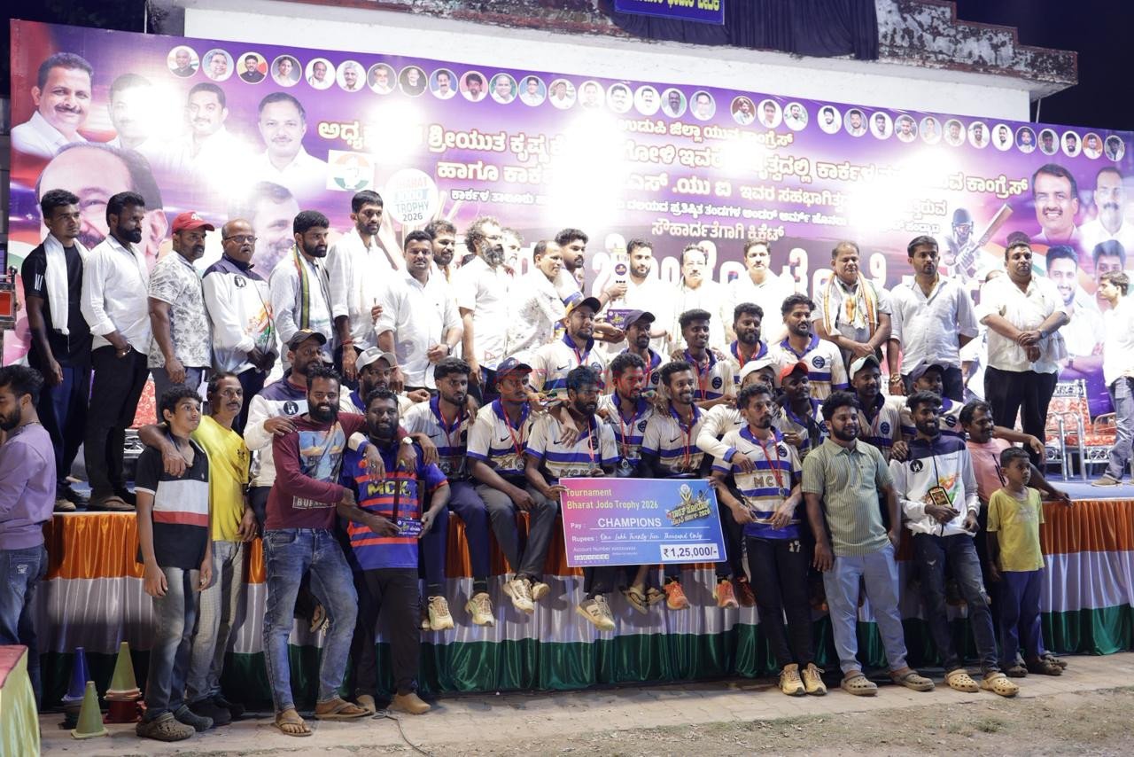 ಭಾರತ್ ಜೋಡೋ ಕ್ರಿಕೆಟ್ ಟ್ರೋಫಿ – 2026ರ ಅಂತಿಮ ಪಂದ್ಯದಲ್ಲಿ ಮಹಾಲಿಂಗೇಶ್ವರ ಕಾರ್ಕಳ ತಂಡವು ವಿಜೇತರಾಗಿ ಹೊರಹೊಮ್ಮಿತು.ಮಂಗಳೂರು ಮೂಲದ ಗೋರಿ ಯಂಗ್ ಬಾಯ್ಸ್ ತಂಡವು ರನ್ನರ್-ಅಪ್ ಸ್ಥಾನವನ್ನು ಪಡೆದುಕೊಂಡಿತು.