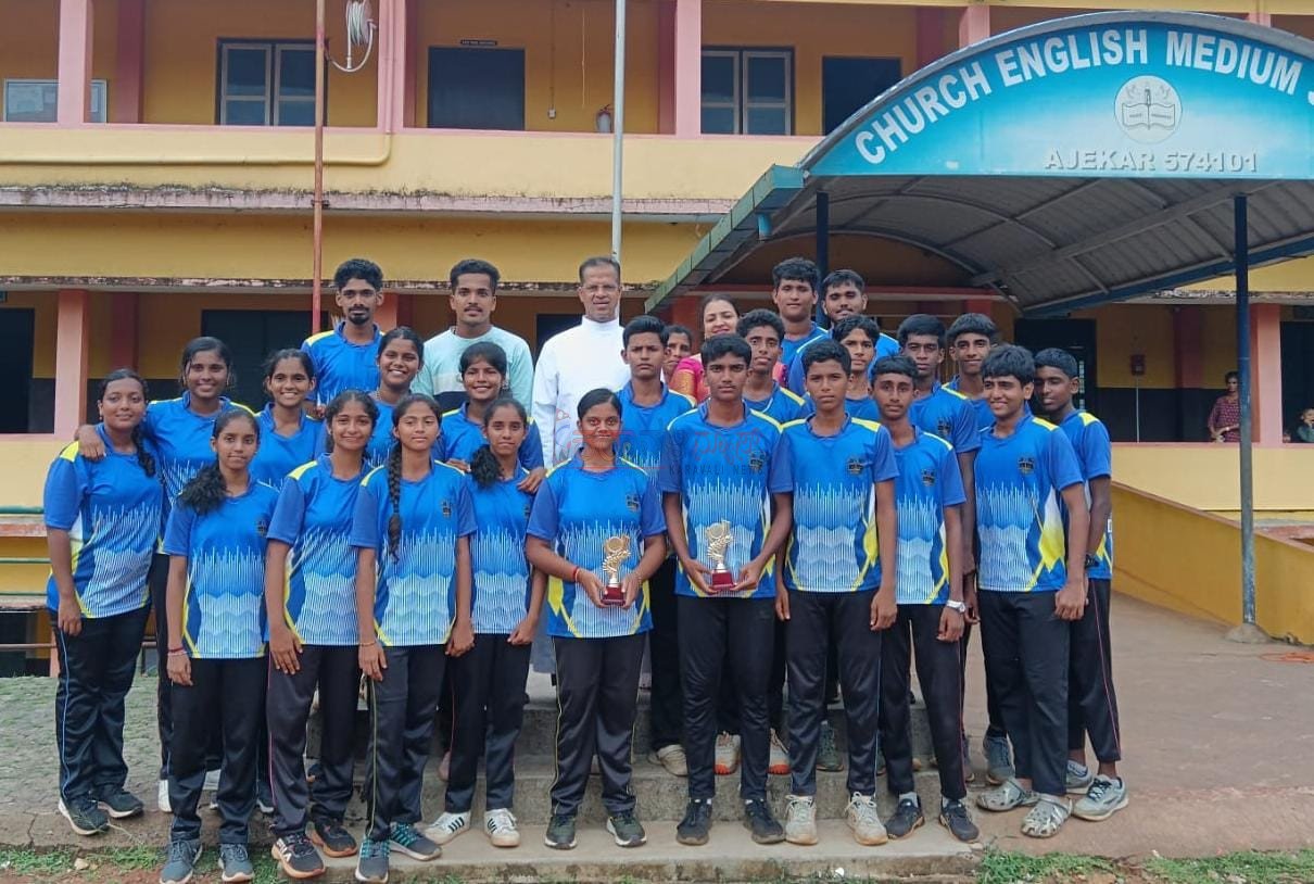 ಕಾರ್ಕಳ: ಹಿರಿಯಂಗಡಿ ಎಸ್.ಎನ್.ವಿ ಪ್ರೌಢಶಾಲೆಯಲ್ಲಿ ನಡೆದ ಕಾರ್ಕಳ ತಾಲೂಕು ಮಟ್ಟದ ಪ್ರೌಢಶಾಲಾ ವಿಭಾಗದ 17 ರ ವಯೋಮಿತಿಯ ಕಾರ್ಕಳ ತಾಲೂಕು ವೃತ್ತ ಮಟ್ಟದ ಬಾಲಕರ ಥ್ರೋ-ಬಾಲ್ ಪಂದ್ಯಾಟದಲ್ಲಿ ಅಜೆಕಾರು ಚರ್ಚ್ ಆಂಗ್ಲ ಮಾಧ್ಯಮ ಶಾಲೆಯ ಬಾಲಕ- ಬಾಲಕಿಯರ ಎರಡೂ ತಂಡ ಗಳು ಪ್ರಥಮ ಸ್ಥಾನ ಪಡೆದು,KMES ನಲ್ಲಿ ನಡೆಯುವ ತಾಲೂಕು ಮಟ್ಟದ ಥ್ರೋ ಬಾಲ್ ಪಂದ್ಯಾಟಕ್ಕೆ ಆಯ್ಕೆಯಾಗಿದ್ದಾರೆ.