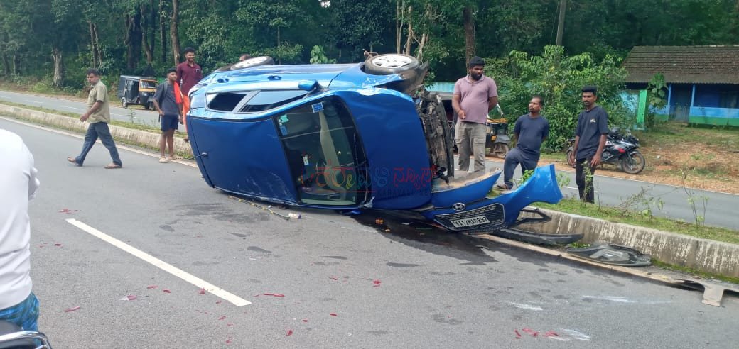 ಹೆಬ್ರಿ,ಆ 06: ಕಾರ್ಕಳ ಕಡೆಯಿಂದ ಹೆಬ್ರಿ ಕಡೆಗೆ ಹೋಗುತ್ತಿದ್ದ ಕಾರೊಂದು ಚಾಲಕನ ನಿಯಂತ್ರಣ ತಪ್ಪಿ ಮುನಿಯಾಲು ಸಮೀಪದ ಚಟ್ಕಲ್ಪಾದೆ ಸಮೀಪ ರಸ್ತೆಯ ಡಿವೈಡರ್ ಗೆ ಡಿಕ್ಕಿಯಾಗಿ ಪಲ್ಟಿಯಾದ ಘಟನೆ ಆ 6 ರಂದು ಮಧ್ಯಾಹ್ನ ಸಂಭವಿಸಿದೆ.