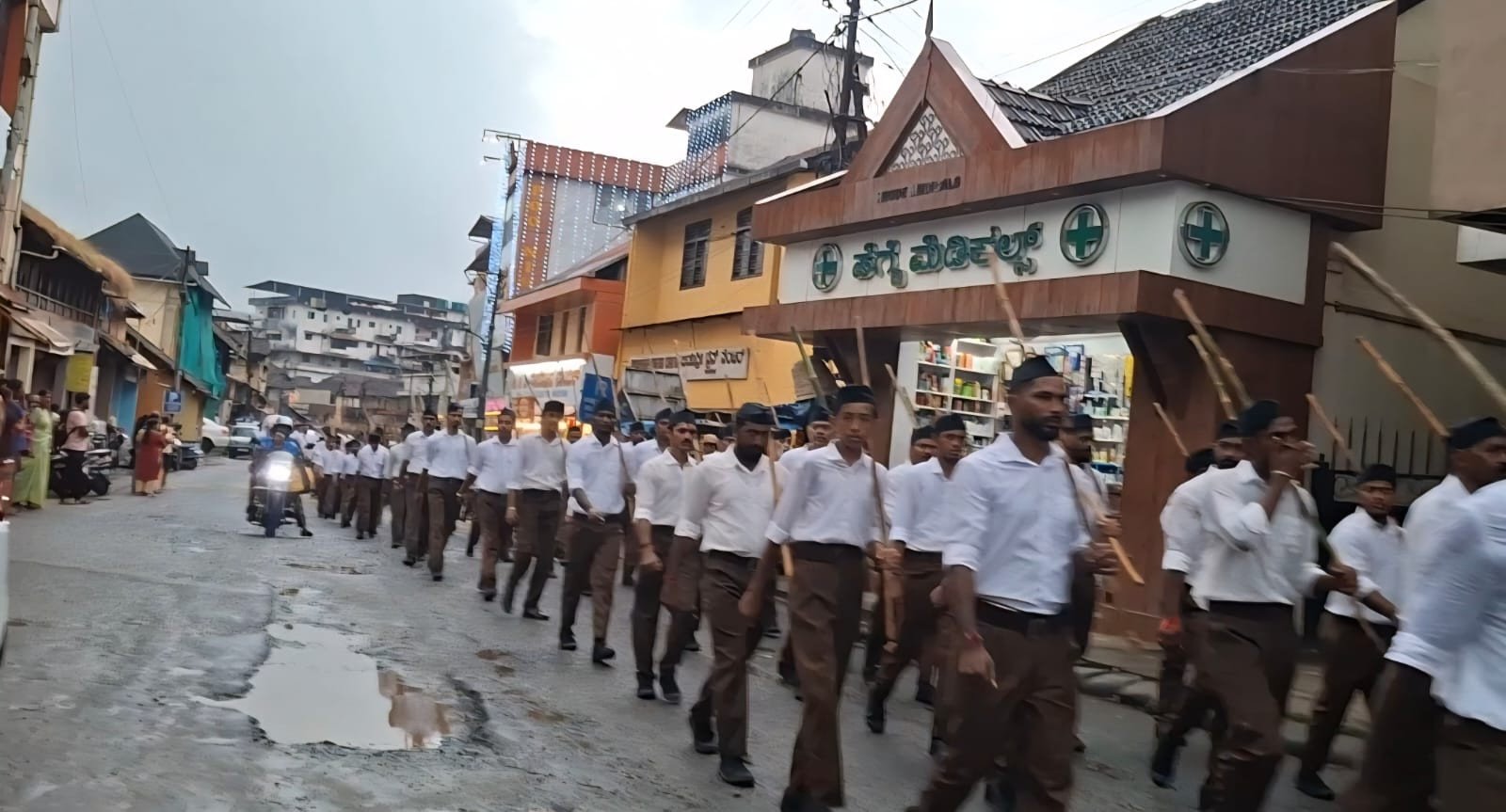 ಕಾರ್ಕಳ, ಅ,19: ಸುರಿಯುತ್ತಿರುವ ಗುಡುಗು ಸಹಿತ ಮಳೆಯ ನಡುವೆ ಕಾರ್ಕಳದಲ್ಲಿ ಸಾವಿರಾರು ಆರೆಸೆಸ್ಸ್ ಕಾರ್ಯಕರ್ತರು ಗಣವೇಷ ಧರಿಸಿ ಪಥಸಂಚಲನ ನಡೆಸಿದರು. ಕಾರ್ಕಳದ ಬಂಡೀಮಠ ಬಸ್ಸು ನಿಲ್ದಾಣದಿಂದ ಆರಂಭವಾದ ಆರೆಸೆಸ್ಸ್ ಪಥಸಂಚಲನ ಅನಂತಶಯನ ವೃತ್ತದವರೆಗೆ ಸಾಗಿ ಬಂತು.ಮಳೆಯ ನಡುವೆ ಕಾರ್ಯಕರ್ತರು ವಿಚಲಿತರಾಗದೇ ಹೆಜ್ಜೆ ಹಾಕುವ ಮೂಲಕ ಶಿಸ್ತು ಹಾಗೂ ಬದ್ಧತೆಗೆ ಮಾದರಿಯಾದರು.