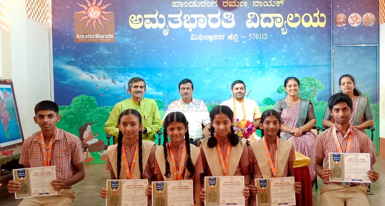 ಹೆಬ್ರಿ,ಜ.02:ಭಾರತ ಸಂಸ್ಕೃತಿ ಪ್ರತಿಷ್ಠಾನ ಬೆಂಗಳೂರು ( ರಿ ) ಇವರು ನವೆಂಬರ್ ತಿಂಗಳಲ್ಲಿ ನಡೆಸಿದ ರಾಮಾಯಣ ಮಹಾಭಾರತ ಪರೀಕ್ಷೆಯಲ್ಲಿ ಉತ್ತಮ ಅಂಕ ಪಡೆದ ಸಾಧಕ ವಿದ್ಯಾರ್ಥಿಗಳನ್ನು ಜ.02 ರಂದು ಹೆಬ್ರಿ ಅಮೃತಭಾರತಿ ಕಾಲೇಜಿನಲ್ಲಿ ನಡೆದ ಸಮಾರಂಭದಲ್ಲಿ ಗೌರವಿಸಲಾಯಿತು.