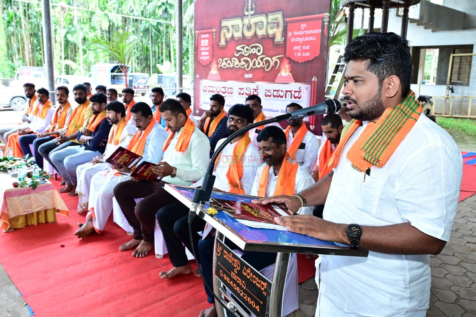 ಕಾರ್ಕಳ : ಪಶ್ಚಿಮಘಟ್ಟದ ದಟ್ಟ ಕಾನನದ ತಪ್ಪಲಿನ ಪುಟ್ಟ ಸುಗ್ರಾಮ ನಾರಾವಿಯಲ್ಲಿ ಡಿ.22 ರಂದು ನಡೆಯಲಿರುವ ಮಹಾ ಚಂಡಿಕಾ ಯಾಗ ದ ಆಮಂತ್ರಣ ಪತ್ರಿಕೆ ಬಿಡುಗಡೆಯ ಕಾರ್ಯಕ್ರಮವು ಮರೋಡಿ ಶ್ರೀ ಉಮಾಮಹೇಶ್ವರ ದೇವಸ್ಥಾನದ ಆಡಳಿತ ಕಾರ್ಯದರ್ಶಿ ಜಯಂತ್ ಕೋಟ್ಯಾನ್, ಖ್ಯಾತ ಉದ್ಯಮಿ ಹಿಂದೂ ಧಾರ್ಮಿಕ ಮುಖಂಡ ರವೀಂದ್ರ ಶೆಟ್ಟಿ ಬಜಗೋಳಿ ಮತ್ತು ಜನ ಸ್ನೇಹಿ ಬಡವರ ಬಂಧು ಪ್ರಖ್ಯಾತ ವೈದ್ಯರಾದ ಡಾ. ಪ್ರಸಾದ್ ಬಿ. ವಿಜಯ ಕ್ಲಿನಿಕ್ ಇವರ ಗಣ್ಯ ಉಪಸ್ಥಿತಿಯಲ್ಲಿ ಅ.13 ರಂದು ಶ್ರೀ ಸೂರ್ಯನಾರಾಯಣ ದೇವಸ್ಥಾನ ವಠಾರದಲ್ಲಿ ನಡೆಯಿತು.