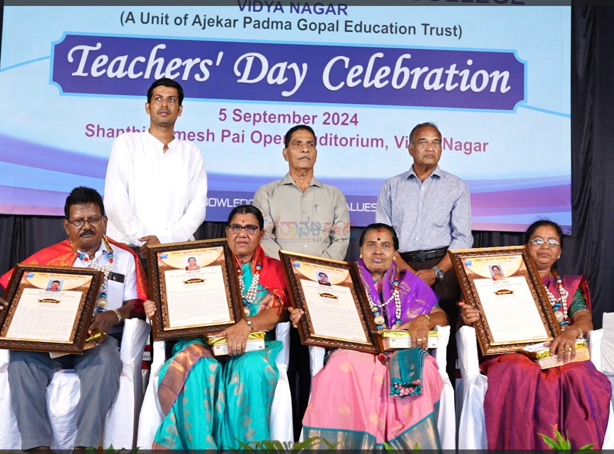 ನಿವೃತ್ತ ಶಿಕ್ಷಕರಾದ ವಿವೇಕಾನಂದ ಸರಕಾರಿ ಹಿ.ಪ್ರಾ.ಶಾಲೆಯ ಸದಾನಂದ ಕೆ.ಎಸ್, ಸರಕಾರಿ ಹಿ.ಪ್ರಾ.ಶಾಲೆ ರಾಜೀವ ನಗರದ ಶ್ರೀಮತಿ ಕಲ್ಪನ, ಎಮ್.ಜೆ.ಸಿಯ ಶ್ರೀಮತಿ ಗುಲಾಬಿ ಸರಕಾರಿ ಹಿ.ಪ್ರಾ.ಶಾಲೆ ವಳಕಾಡು ಇಲ್ಲಿಯ ಶ್ರೀಮತಿ ಹರಿಣ ಇವರನ್ನು ಅಜೆಕಾರು ಪದ್ಮಗೋಪಲ್ ಎಜ್ಯುಕೇಶನ್ ಟ್ರಸ್ಟ್ ವತಿಯಿಂದ ಸನ್ಮಾನಿಸಲಾಯಿತು.